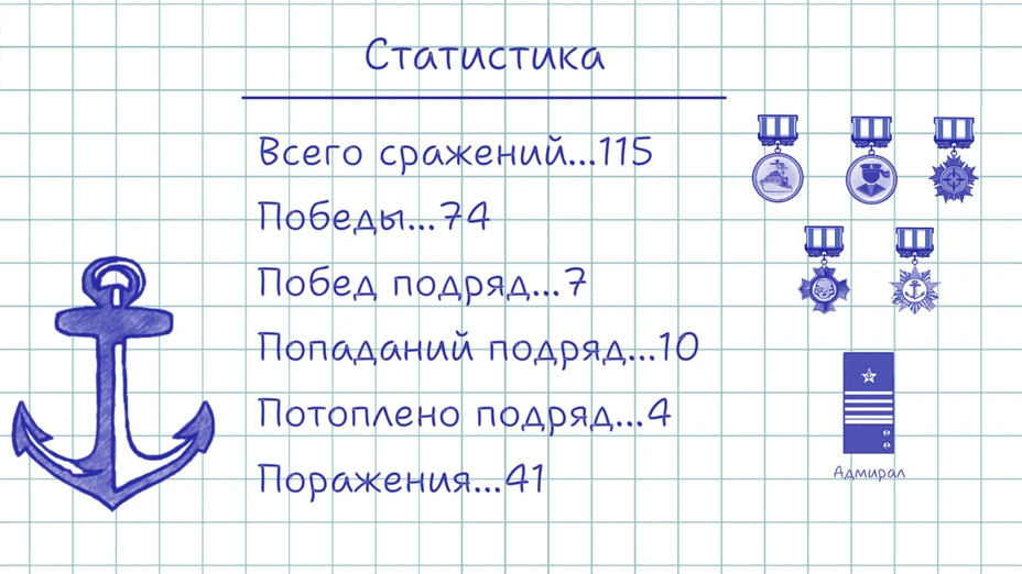 - ✅ ⚓ Линкор — 3 клетки. Тяжёлая артиллерия флота.